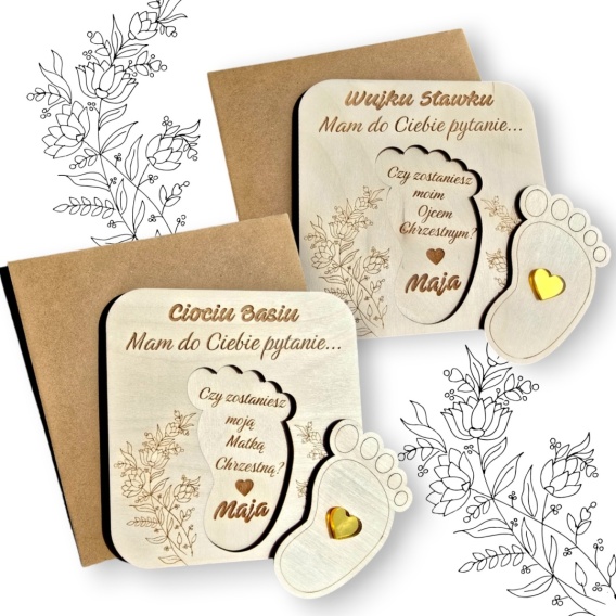 • CIOCIU CZY ZOSTANIESZ MOJĄ CHRZESTNĄ WUJKU ZAPROSZENIE PROŚBA DREWNO STÓPKA