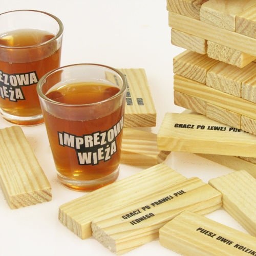 • IMPREZOWA WIEŻA PL Drewniane Klocki + Kieliszki