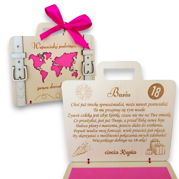 KARTKA PREZENT NA 18 URODZINY OSIEMNASTKĘ WALIZKA KOPERTA NA PIENIĄDZE VOUCHER BON