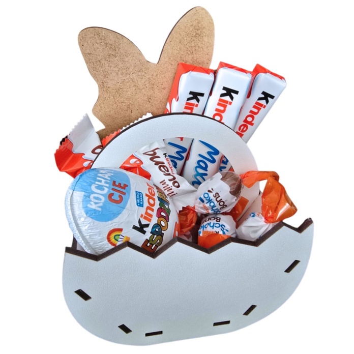 Koszyczek idealnie sprawdzi się do zapakowania czekoladek, jajek wielkanocnych oraz drobnych upominków. To piękna dekoracja świąteczna, a jednocześnie praktyczny koszyk, który dziecko może wykorzystać również w kolejnych latach.