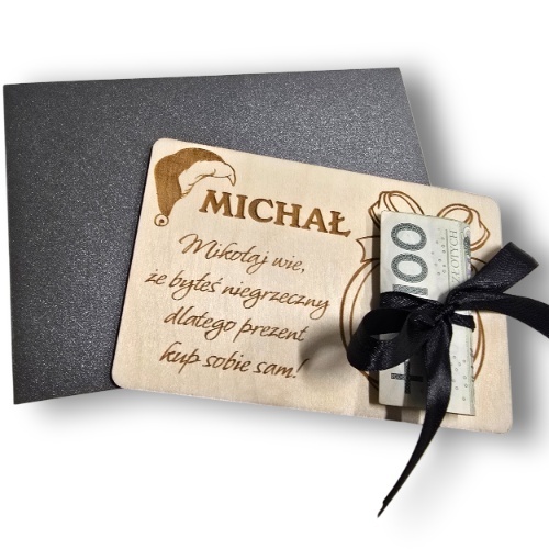 MIKOŁAJKOWY BON PODARUNKOWY VOUCHER NA PIENIĄDZE MIKOŁAJ WIE + KOPERTA
