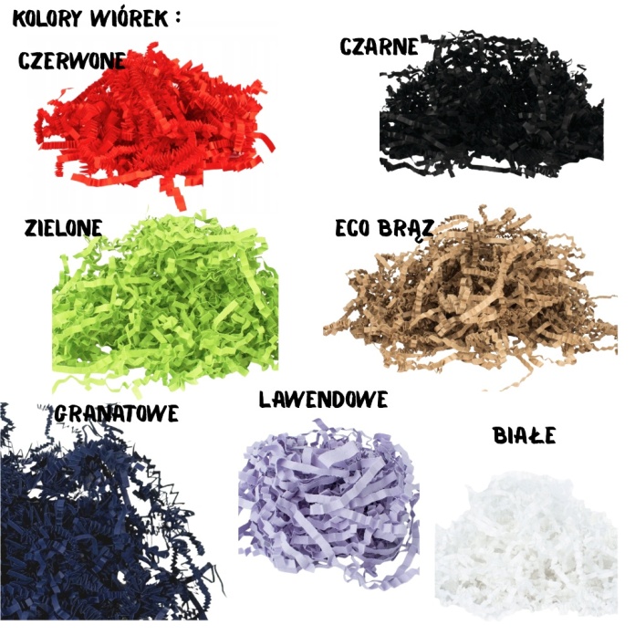 W środku znajdują się ozdobne wiórki papierowe – do wyboru kolor: