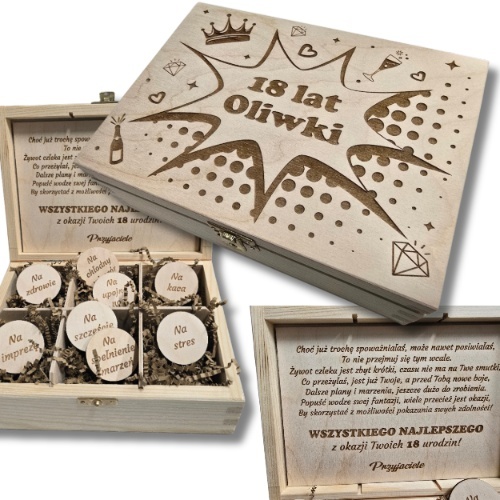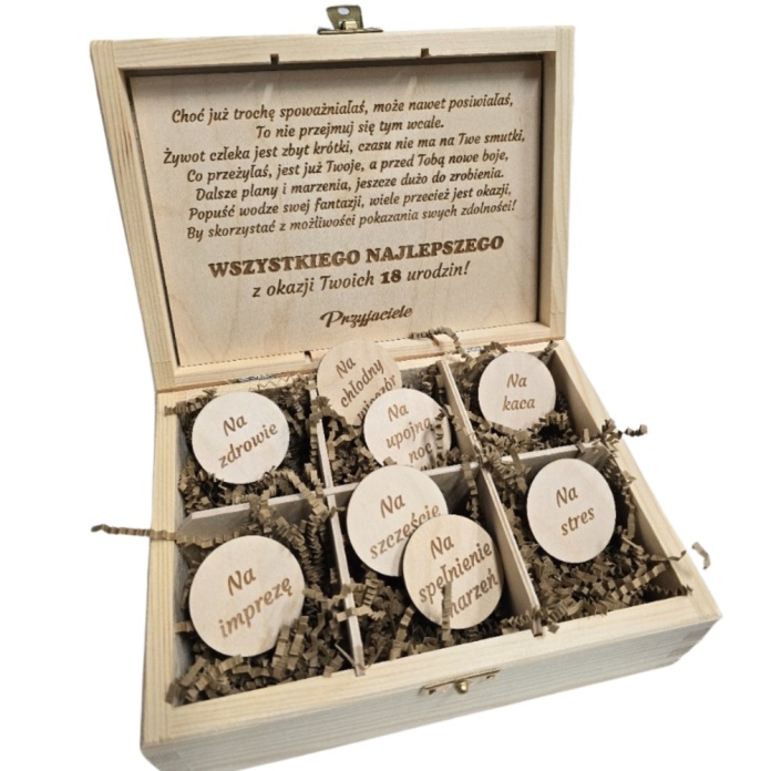 ✨ PERSONALIZOWANY NIEZBĘDNIK URODZINOWY – DREWNIANA SKRZYNECZKA Z GRAWEREM -NIEPOWTARZALNY PREZENT DLA KAŻDEGO!