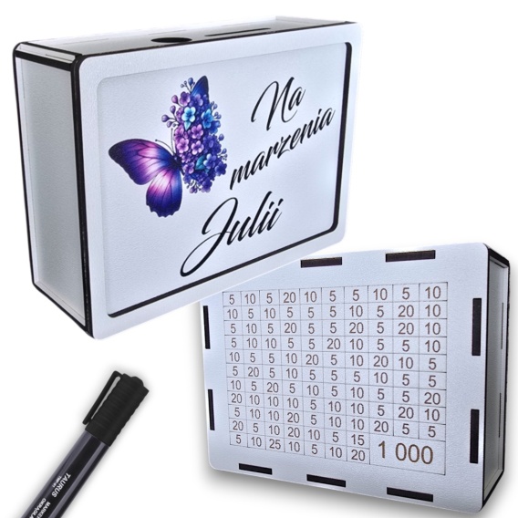 ✨ Skarbonka wykreślana personalizowana imieniem - MOTYL - 1000 zł / 5000 zł ✨