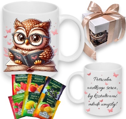 Zestaw Kubek DLA NAUCZYCIELA SOWA PREZENT Dzień Nauczyciela + Herbata 6szt. + Pudełko